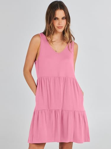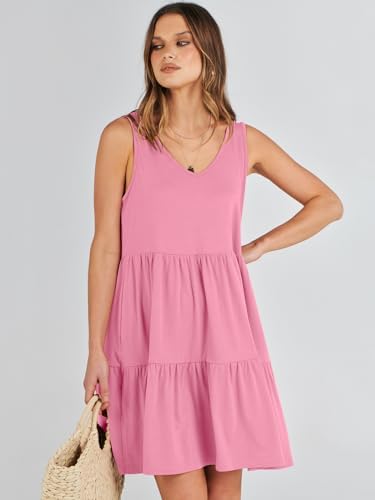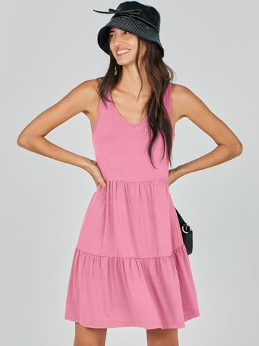 ANRABESS Womens Summer Casual Tank Dress Sleeveless V Neck T Shirt Sundress Flowy Tiered Swing Mini Beach Vacation Dresses