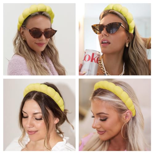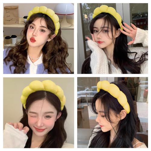AOENJIE Spa Headbands for Washing Face or Makeup, Sponge Bubble Skincare Headbands, Puffy Terry Cloth Hairband for Women, Skin Care Makeup Headwear Hair Accessories for Girls (Yellow)
