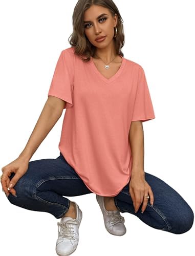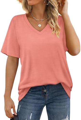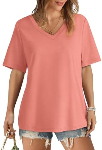 Aokosor Womens T Shirts V Neck Short Sleeve Casual Loose Tees Tops 2024 Trending Now