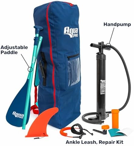 Aqua PRO Halcyon Adventure Inflatable Stand-Up Paddleboard iSUP, Scalloped Wide Stable Design with Non-Slip EVA Deck, Includes Paddle, Ankle Leash, Pump and Carry/Storage Bag