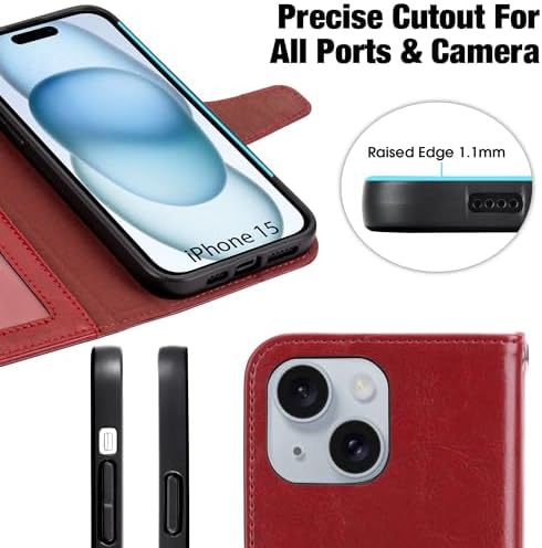 [MATERIAL] – Made of Top quality PU leather. this premium leather are selected for quality, strength, character and grain, Specially Designed wallet Case for iPhone 15 6.1 inch. ATTENTION: This Case Can NOT WORK with Magnetic Charger and Qi Wireless Charging.