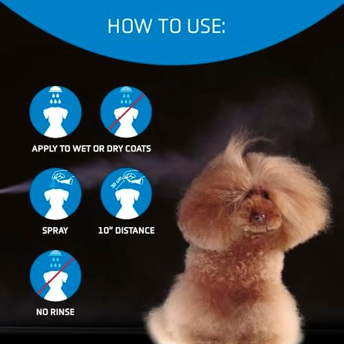 This detangling conditioner spray softens knots, improves the glide of the brush bristles over the coat to save hand effort by untangling faster, and conditions the hair, making it more elastic and resistant to breaking during brushing.