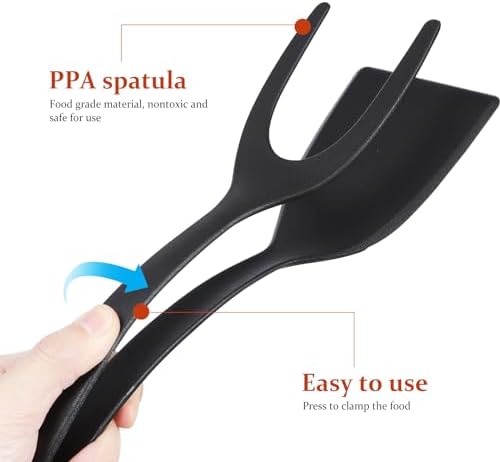 Artibetter 2 in 1 Grip and Flip Spatula Tongs Egg Flipper Tong Fish Pancake French Toast Omelet Making Tool Meat Spatula for Home Kitchen Cooking Baking Black