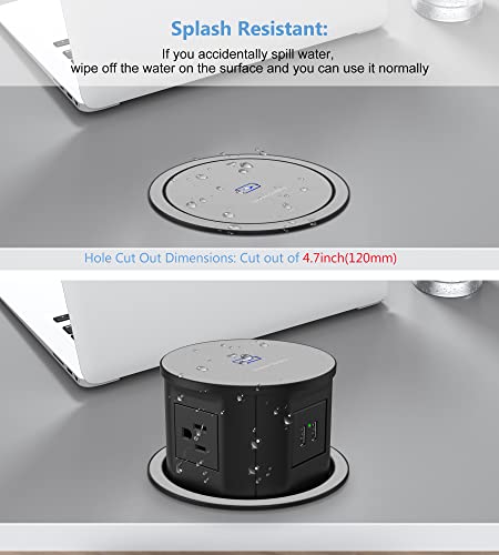 Automatic pop up power grommet made of Refined Hardened Scratch-Resistant PVC Plastic.Waterproof Function:If you accidentally spill water,wipe off the water on the surface and you can use it normally.