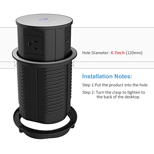 Easy to installing:Jgstkcity automatic pop out outlets fits 4.7inch(120mm) hole size,and has a built in spring loaded pop up mechanism, simply press in the top to pop the unit up for use.