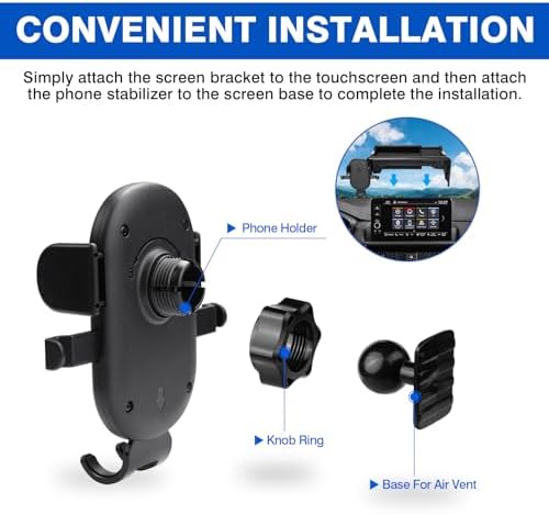 Simple Installation—No drilling or any tools required. Simply attach the screen bracket to the touchscreen and then attach the phone stabilizer to the screen base to complete the installation.