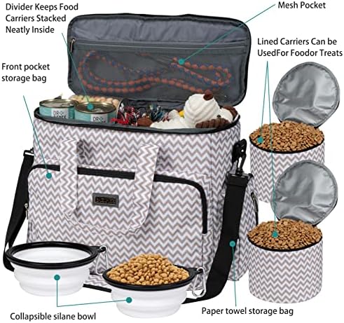 BAGLHER Dog Travel Bag, Pet Travel Bag (All Pet Travel Supplies), with 2 Pet Food Containers and 3 Collapsible Silicone Bowls; Essential Kits for Pet Travel BLW