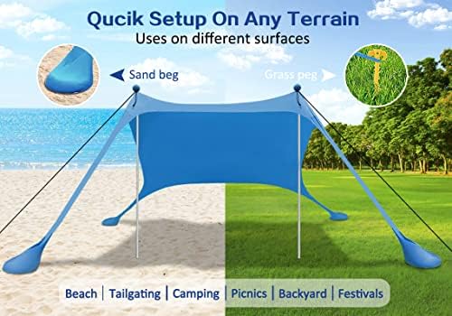 UV Protection- This beach shade canopy offering UPF 50+ ,which can keep you and your family from the harmful UV rays and reduce sun burn or glare.