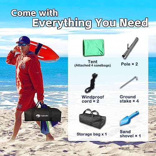 EasierHike Beach Shade Tent — 7×7.15ft expanded area and 6.5ft tall poles, suitable for 1-4 people. 5 colors available. Set up on the beaches to have a leisure time, accompanying you fishing by the lake or help you have a pleasant weekend with someone you love.