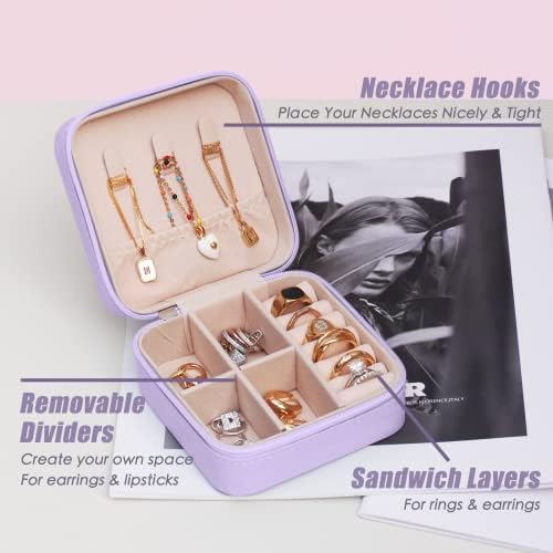 BeBeGeeTravel Jewelry Case, Portable Mini Jewelry Travel Organizer, Small Jewelry Boxes for Women, Bridesmaid Gifts and Travel Essentials Accessories to Store Rings, Necklaces, Earrings(Lavender-1 pc)