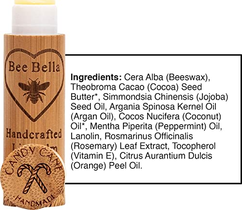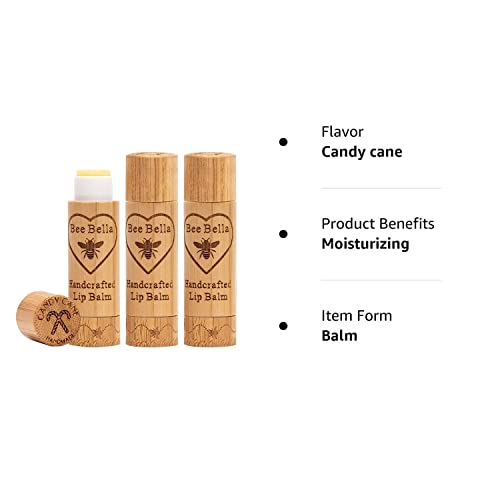 Bee Bella Lip Balm, Candy Cane Scent, Moisturizing Lip Care Christmas Gifts, 100% Natural, Original Beeswax with Vitamin E, Handmade in USA (3 Pack), Unique gift,