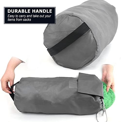 Premium Material & Durable: The ditty bags are made of high-quality polyester material, which provides a excellent combination of ultralight, tear-resistant and durability for your drawstring bags. The reinforced stitches make these stuff sacks for backpacking durable enough to hold many items without broken.