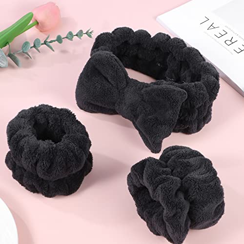 BESARME 3 Pieces Face Wash Headband and Wristband Set Spa Headband Makeup Skincare Headbands Hair Accessories for Women Wrist Towels Wrist Bands for Washing Face (Black)