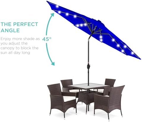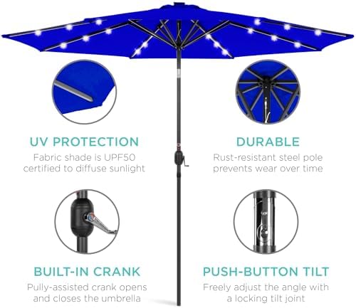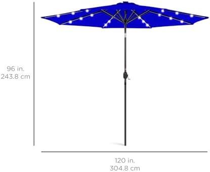 Best Choice Products 10ft Solar Polyester LED Lighted Patio Umbrella w/Tilt Adjustment and UV-Resistant Fabric – Resort Blue
