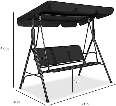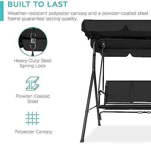 Best Choice Products 2-Seater Outdoor Adjustable Canopy Swing Glider, Patio Loveseat Bench for Deck, Porch w/Armrests, Textilene Fabric, Steel Frame – Black