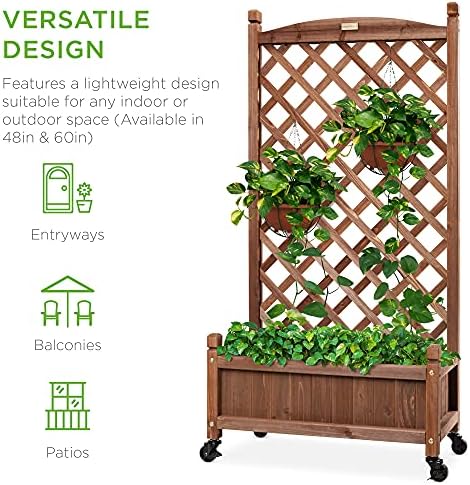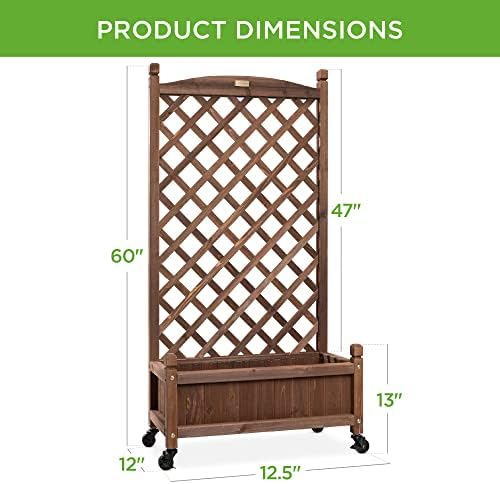 Best Choice Products 60in Wood Planter Box & Diamond Lattice Trellis, Mobile Outdoor Raised Garden Bed for Climbing Plants w/Drainage Holes, Optional Wheels – Walnut