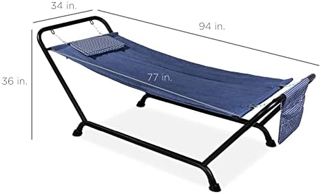 Best Choice Products Outdoor Hammock Bed with Stand for Patio, Backyard, Garden, Poolside w/Weather-Resistant Polyester, 500LB Weight Capacity, Pillow, Storage Pockets – Blue