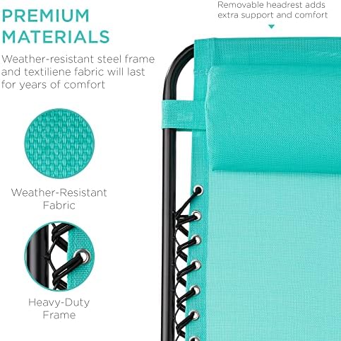 Best Choice Products Set of 2 Adjustable Steel Mesh Zero Gravity Lounge Chair Recliners w/Pillows and Cup Holder Trays – Mint