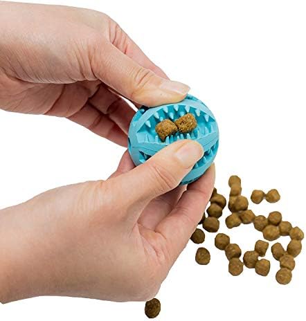 These rubber dog toys balls are especially manufactured for cat, small dogs and large dogs; they are useful both in home and outdoor games.And we believe they will provide you and your pets with more pleasure.Why dogs need interactive dog IQ training toys?Playtime keeps dogs physically fit and mentally sharp. Without toys and healthy exercise, dogs may grow bored and engage in destructive behavior.Meanwhile, the interactive games can build trust and privity between people and pets.Why choose the rubber dog toys?The natural rubber material, more heathy and non-toxic compared with PVC and TPR, will not harm the pets and destroy the environment.More information:Flavor: light mint scentDiameter: 1.8inch (about 4.5 cm)Material: healthy and environmental protection of the natural rubberPackage Includes: pack of 2 balls(green+cyan) with light mint scent