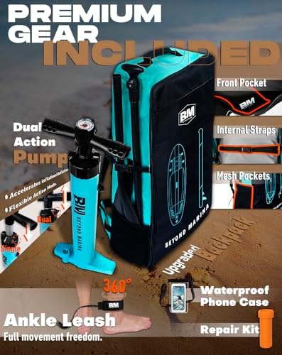 【 PREMIUM ISUP KITS & 24/7 SERVICE 】ALL BM Paddleboards offer professional while delivering versatility. everything you need is in one compact upgraded backpack! includes 360 degree twist ankle leash, snap-in tool-less removable fin, dual-action hand pump, 3-piece adjustable paddle, repair kits, and waterproof phone case. just paddle around and enjoy the outdoors backed by BEYOND MARINA 24/7 commitment.