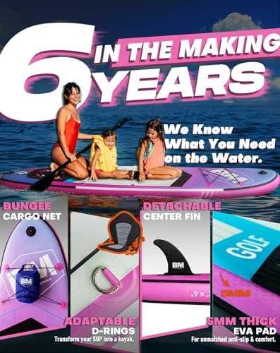 【 6 YEARS OF MAKING 】With over 6 years of dedication to the paddleboard industry, BM Know What You Need on the Water. The large anti-slip EVA deck pad (5mm thick) greatly improves stability and safety while standing. It provides super comfort for long-time SUP paddling or kayaking, whether you’re on a lake, beach, or tackling rapids. With 11 D-rings, you can transform your SUP into a kayak easily. Additionally, reinforced bungee cords provide extra security for your cargo during water play.