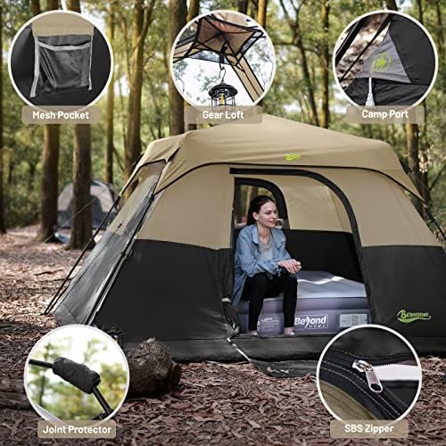 BeyondHOME Instant Cabin Tent, 4 Person/6 Person Camping Tent Setup in 60 Seconds with Rainfly & Windproof Tent with Carry Bag for Family Camping & Hiking, Upgraded Ventilation