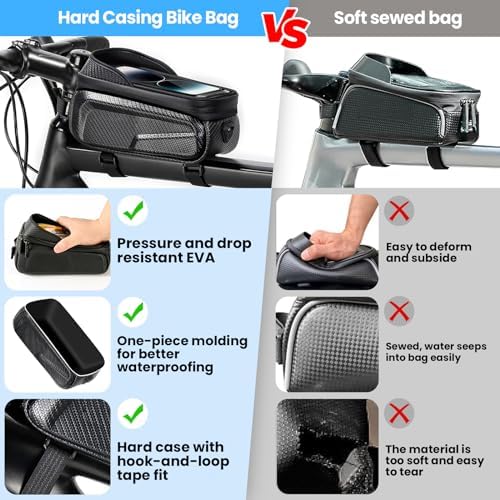 【𝐋𝐈𝐆𝐇𝐓𝐖𝐄𝐈𝐆𝐇𝐓 𝐇𝐀𝐑𝐃 𝐂𝐀𝐒𝐄 𝐃𝐄𝐒𝐈𝐆𝐍】: Our cell phone pouches are designed with lightweight hard-shell EVA to minimize the weight of your entire bike gear. The sturdy construction ensures that your cell phone and belongings remain secure during your ride, even on bumpy off-road trails.