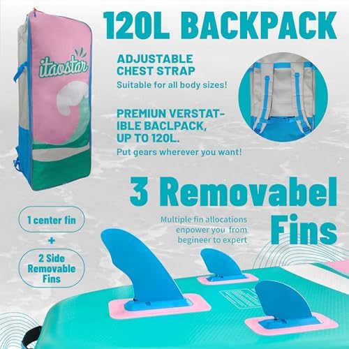 【𝗨𝗽 𝘁𝗼 𝟱𝟬𝟬 𝗟𝗕𝗦 & 𝗠𝗼𝗿𝗲 𝗕𝗮𝗹𝗮𝗻𝗰𝗲 𝗕𝗼𝗮𝗿𝗱 𝘄𝗶𝘁𝗵 𝗘𝘅𝘁𝗿𝗮 𝗪𝗶𝗱𝗲 𝟯𝟲”, 𝗙𝗮𝗺𝗶𝗹𝘆 𝗣𝗮𝗱𝗱𝗹𝗲 𝗕𝗼𝗮𝗿𝗱】iTAOSTAR inflatable stand up paddle board for adults is 2 or 4 inches wider than other inflatable sup board, up to 500 lbs weight capacity make it more suitable for 2 person paddle board, so you can take your family or pets together. The extra-wide design balance fishing paddle board creates an incredible stable experience for all skill levels