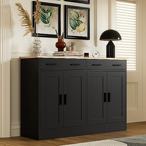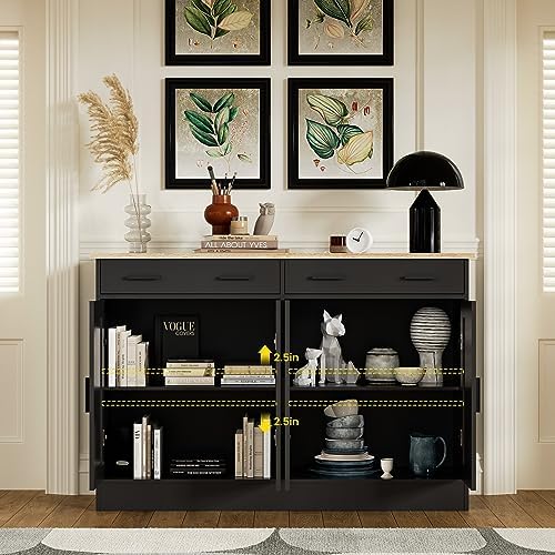 Black Buffet Cabinet, Coffee Bar Cabinet with 2 Drawers & 4 Doors, Kitchen Buffet Sideboard for Living Room, Kitchen