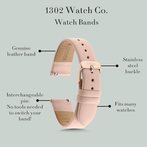 1302 Watch Co. watch straps are made of genuine Italian leather or stainless steel mesh, and come with a stainless steel buckle in either gold, rose gold, or silver. All our bands feature a quick release spring bar in the strap allowing you to easily change the band without using any other tools. These watch bands fits all 1302 watches as well as many other brand watches with 14mm, 16mm, 18mm, 20mm, or 22mm straps.