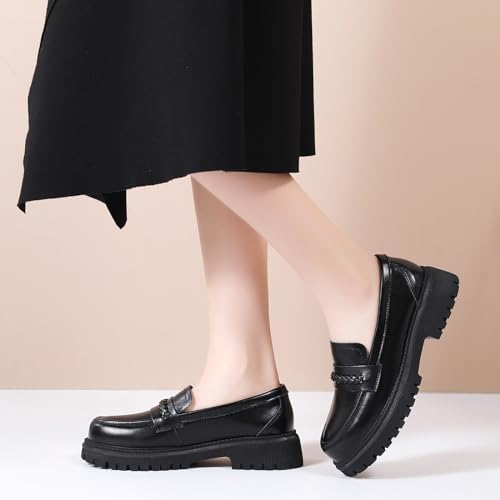 Black Loafers for Women Chunky Women’s Loafers & Slip-ons Penny Comfort Shoes Dressy Office Work Slip on Platform Loafers for Womens Ladies Shoes