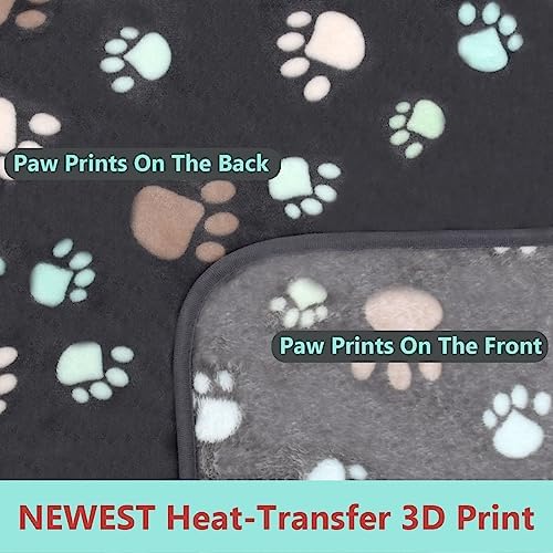 Blankets for Dogs,3 Pack Grey Dog Blankets for Large Dogs Cat,Washable Pet Blankets 41″ x 31″,Soft Pet Mat Throw Cover for Kennel Crate Bed,Cute Paw Puppy Blankets for Medium,Small Dogs