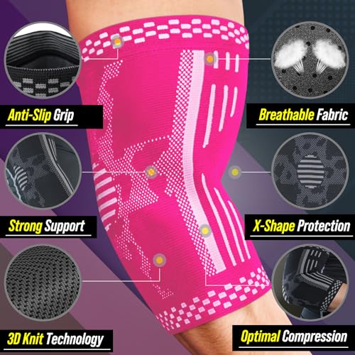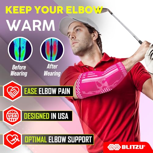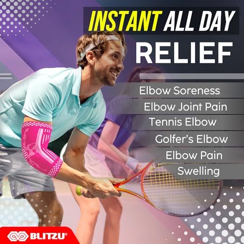 BLITZU 2 Pack Elbow Brace Support, Elbow Compression Sleeve Orthopedic Pain Relief for Golfer’s, Tennis Elbow, Arthritis, Bursitis, Tendonitis Treatment, Workout, Fitness & Weightlifting. Pink S