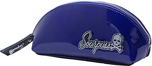 Here is the perfect mid-sized makeup bag to throw in your purse or carry on its own. It’s made of a great, glossy vinyl that looks textured, yet is smooth to the touch. Complete with a Sourpuss metal emblem on the front, black inner lining and tiny zippered inner pocket, this little pouch is a great way to keep your things compact and organized on the go. Measures 8″ x 3.5″ x 2.5″ Material: Vinyl