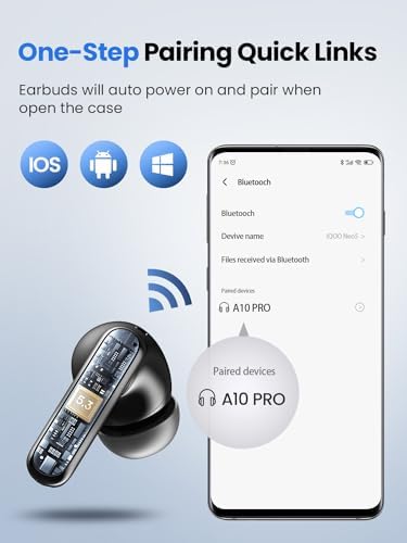Bluetooth 5.3 and one-step auto-renewal: Bluetooth earphones use the latest Bluetooth 5.3 technology for more stable transmission and longer range, offering an uninterrupted calling and music experience. After the first pairing, simply remove both wireless earbuds from the charging case to pair automatically.