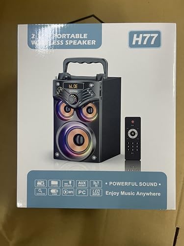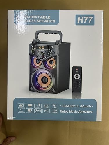 [Multifunctional Wireless Bluetooth Speakers & EQ Mode]The H77 portable Bluetooth speaker uses Bluetooth 5.0 technology.It can be freely and easily connected to smartphones, PC, TV or other bluetooth devices, with a barrier-free transmission range of up to 100 feet.You can also connect other non-Bluetooth devices such as MP3, MP4, computer, etc. via an 3.5mm audio cable.Take your sound quality into your own hands with the built-in equalizer (indoor and outdoor mode).