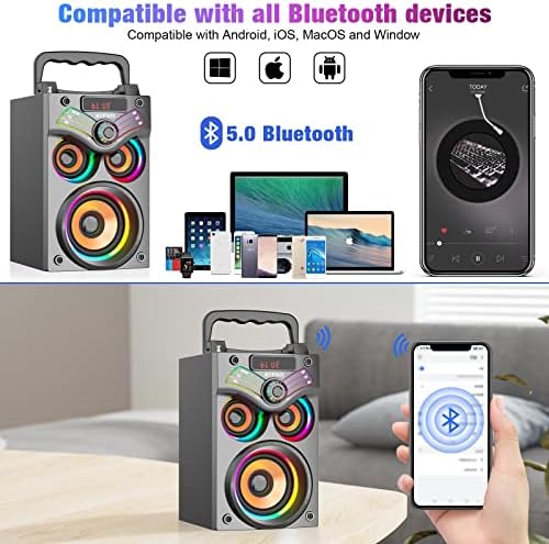 Bluetooth Speakers, Portable Wireless Speakers with Subwoofer, Bluetooth 5.0, LED Colorful Lights, FM Radio, Remote, EQ, Loud Stereo Sound Deep Bass Sound Boombox System for Outdoor Home Party Camping