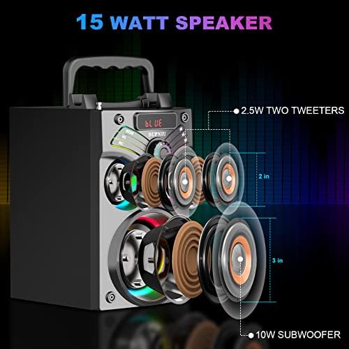 [Bluetooth Speaker with radio & Party Speakers]The Bluetooth speaker with FM Radio function, it can automatically search for nearby valid radio stations and save them with one click.It supports microphone function, you need to be equipped with a suitable microphone (no include), allows your family and friends to fully enjoy the passionate singing that brings happiness and joy to their lives.The SUPNIU H77 small party speaker is very suitable for listening to music, watching movies, meetings, etc