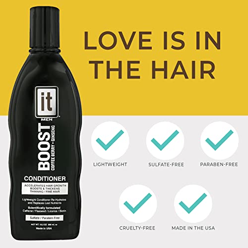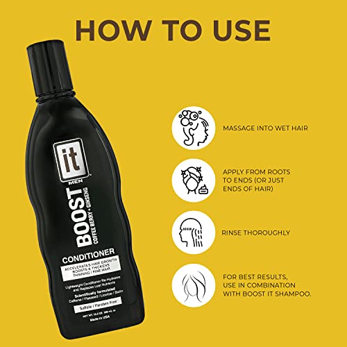 BOOST IT Conditioner for Men, 10.2oz – Accelerates Hair Growth, Thickens Thinning & Fine Hair – Natural Thicker & Healthy Hair – Infused with Biotin, Avocado Oil & Caffeine – Sulfate & Paraben Free