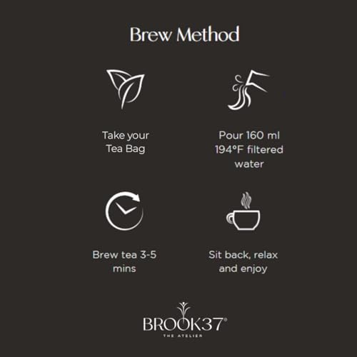 Brook37 Signature Tea Bags: 20 Bio-degradable Pyramid Tea Bags made with natural Corn Starch, more than two times larger than the commercial tea bags allowing a perfect brew.