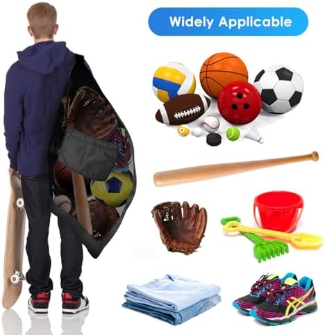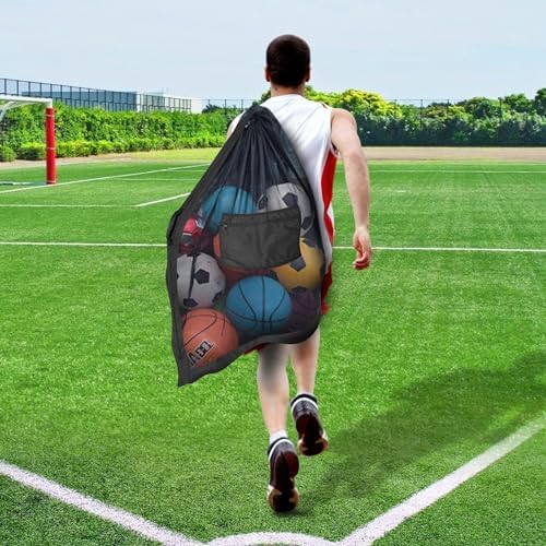 🏀EXTRA BASKETBALL BAGS FOR TEAM BALLS: Measured at 40″ x 30″. It holds team jersey, practice balls, even water sports gear and laundry. Can hold 12 soccer balls (size 5), 15 footballs, 12 ugby balls or 8 basketballs. It is the one giant athletic ball bag mesh you will ever need for all your sports and outdoor events.