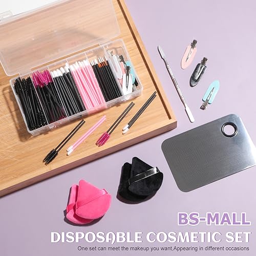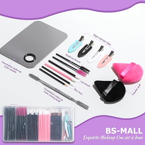 BS-MALL Disposable Makeup Tools: Mascara Brush, Lip Brush, Eyeliner Brush, Seamless Hair Clips, and 4 Triangular Powder Puffs