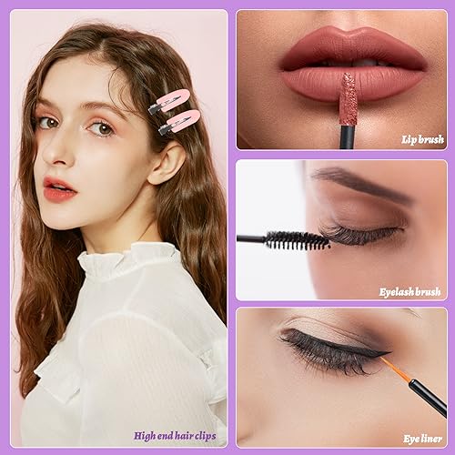 All-in-One Kit: Contains everything you need for a flawless makeup application – mascara brush, lip brush, eyeliner brush, hair clips, and powder puffs.