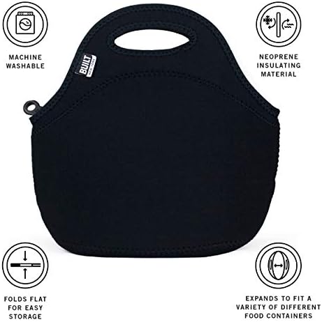 BUILT LB31-BLK Gourmet Getaway Soft Neoprene Lunch Tote Bag – Lightweight, Insulated and Reusable, One Size, Black