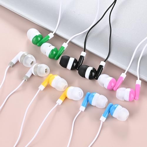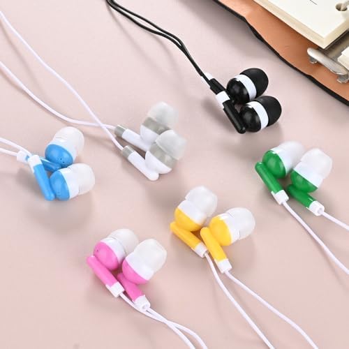 120 Packs Bulk Earbuds: 6 different colors mixed Black, White, Yellow, Green, Blue, Pink, each individually opp packaged, bright colors can inspire more especially for students and kids in classroom use