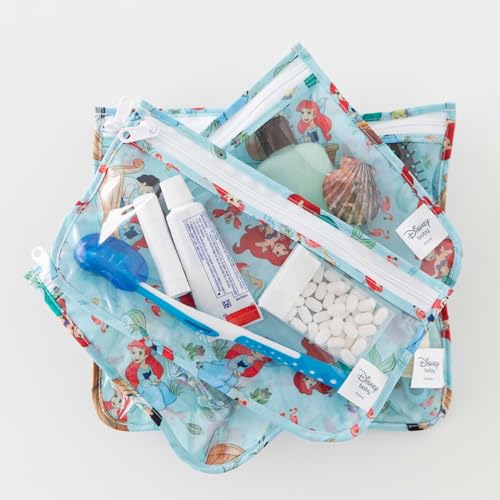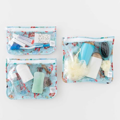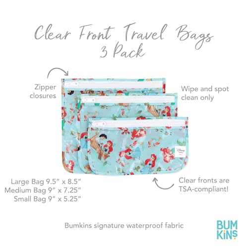 Bumkins Disney Ariel Travel Bag, Toiletry, TSA Approved Pouch, Zip Bag, Quart Size Airline Compliant, Clear-Sided, Baby, Diaper Bag Organization, Makeup, Accessories, Packing, Set of 3 Sizes