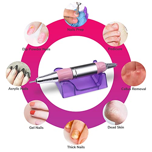[Multifunctional]: This Electric Nail Drill Machine is designed for pedicure and manicure, equipped with 6 different drill bits for grinding, sanding, polishing nails and removing nail gels, perfect for professional salon, studio, or get salon grade nails at home