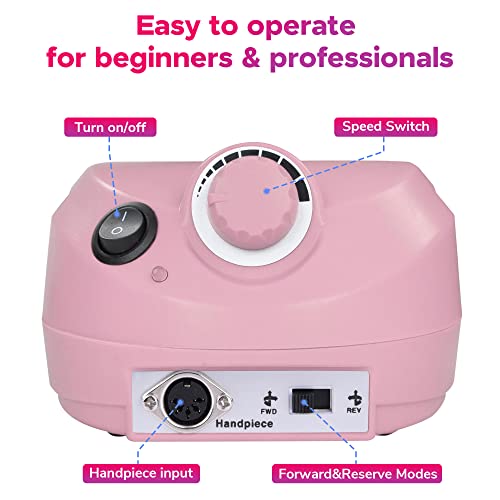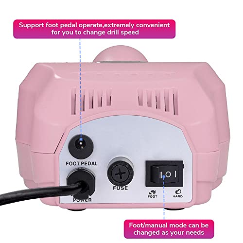 [Adjustable Speed]: Features adjustable speed between 0 to 30,000 RPM for different needs, low speed for cuticles, medium speed for backfills and concave shapes, high speed for shaping nail surfaces, all adjustable with a single convenient control knob