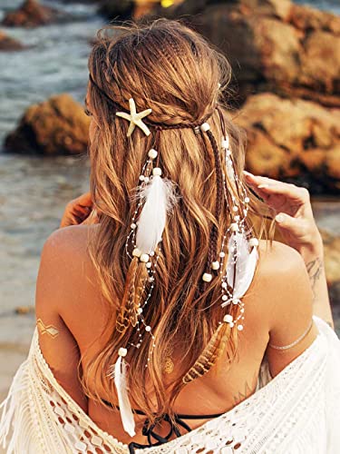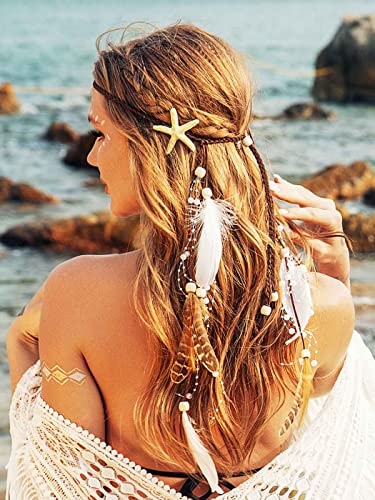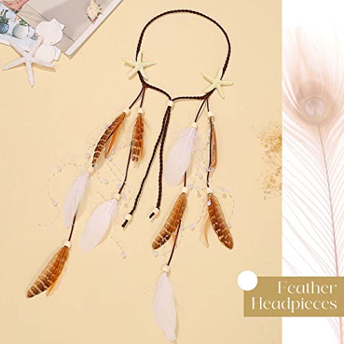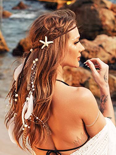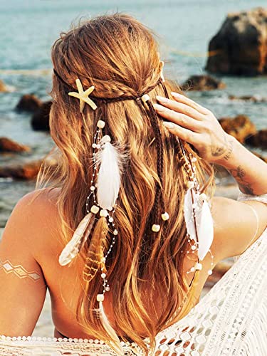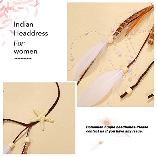 CAKURE Starfish Headband White Feather Headpiece Hippie Gypsy Indian Hair Band Adjust Headdress Feather Hair Accessories for Women and Gilrs (Type3)