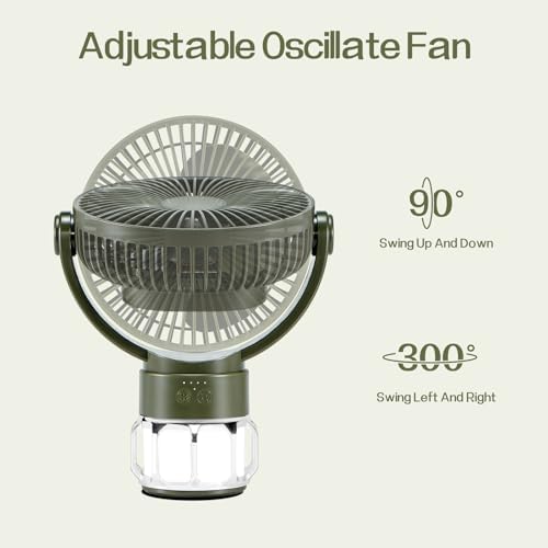 Camping Fan For Tent, 32H Cooling LED Fan Lantern Remote Control With Stand, 3 Speed Settings, 3 Light Modes, 10000mAh Battery, 240°Oscillating, Quiet Vintage Fan For Hurricane Season